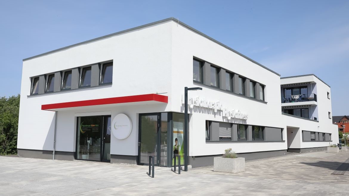 Die Praxis im Erdgeschoss verfügt über sieben abgeschlossene Einzelbehandlungsräume und einen separaten Krankengymnastikraum, die eine ungestörte Behandlungsatmosphäre sicherstellen. Die technische Ausstattung (neueste Trainingsgeräte, Ultraschall, Elektrotherapie, u.a.) und das freundliche Ambiente geben der Behandlung einen optimalen Rahmen.
